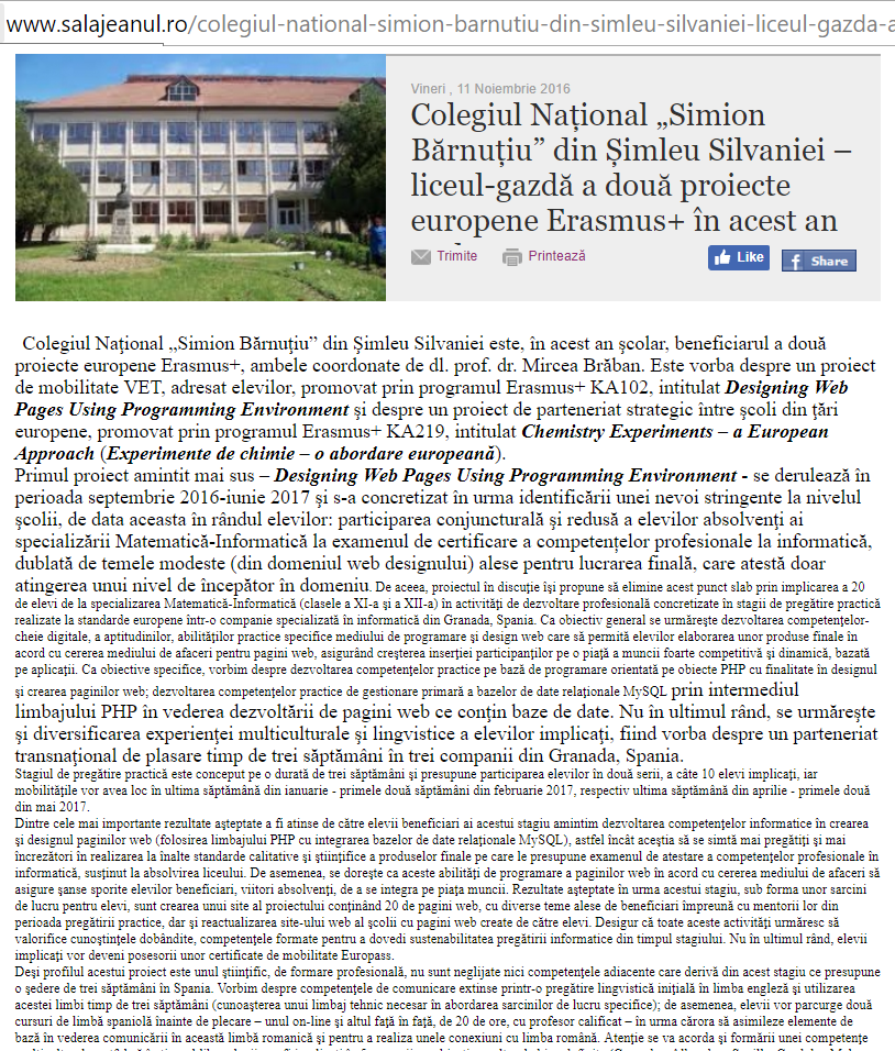 - prezentul site făcând publice activitățile cu caracter european ale Colegiului Național "Simion Bărnuțiu Șimleu Silvaniei.